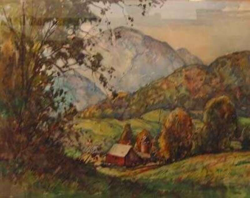 WILLIAM LESTER STEVENS (AMERICAN 1888-1969) FARM HOUSES IN A LANDSCAPE