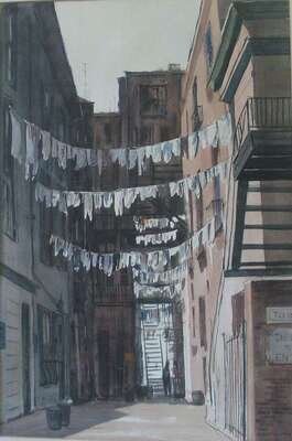 MILDRED SANDS KRATZ (AMERICAN 20TH CENTURY)TWO WATERCOLORS "THE HANGING ON SPRUCE STREET"