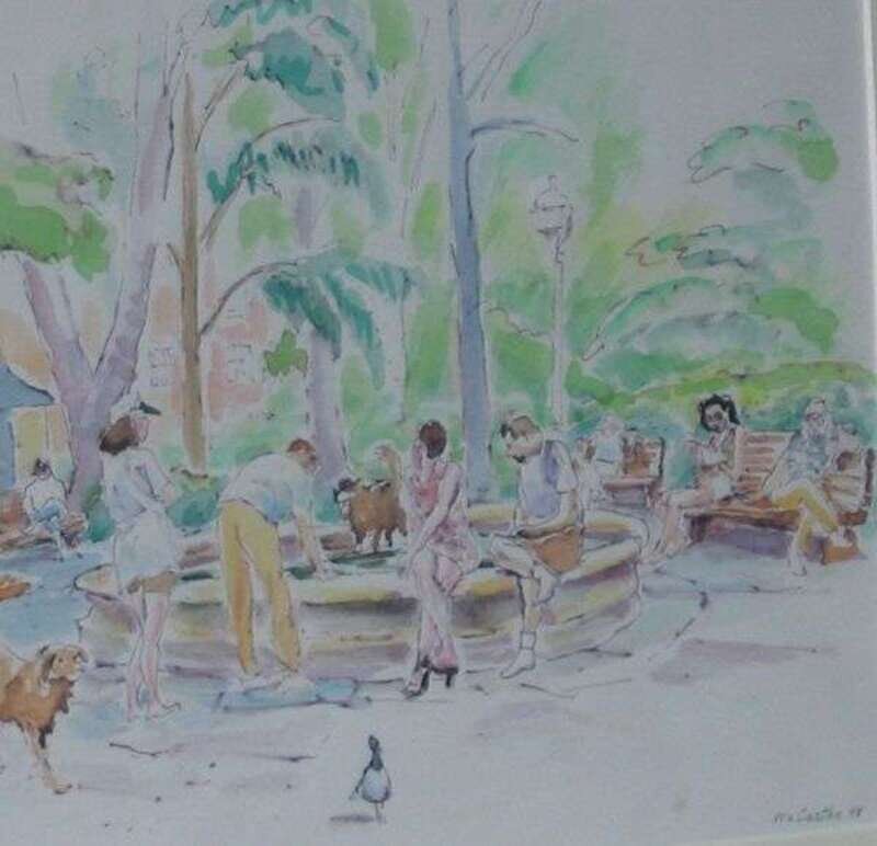 FRANCIS MCCARTHY (AMERICAN 20TH CENTURY) FOUNTAIN SCENE WITH FIGURES