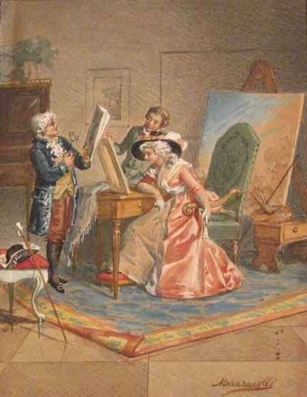 *MAZZAROLLI (ITALIAN 19TH CENTURY)TWO WATERCOLORS INTERIOR GENRE SCENES