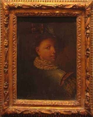 CONTINENTAL SCHOOL (18/19TH CENTURY) YOUTH IN CAP WITH FEATHER AND BREASTPLATE
