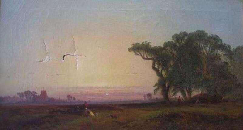 A*W* NICHOLSON (BRITISH 19TH CENTURY) PASTORAL SCENE WITH FIGURES, VILLAGE IN DISTANCE
