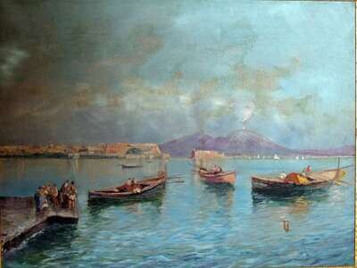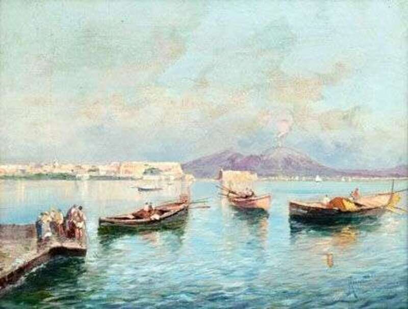 OSCAR RICCIARDI (ITALIAN 1864-1935) BAY OF NAPLES WITH VESUVIUS