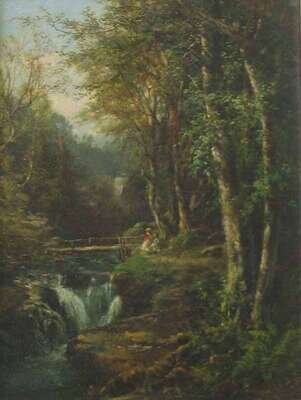 AMERICAN SCHOOL (19TH CENTURY) FIGURES IN A LANDSCAPE WITH WATERFALL