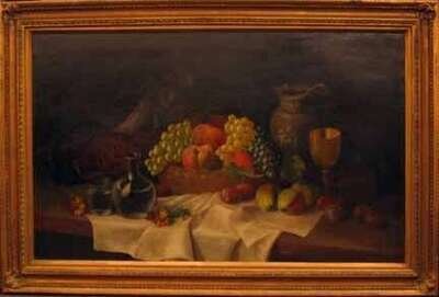 BELLA RUSSELL (BRITISH 19/20TH CENTURY) NATURE MORTE WITH PHEASANT AND FRUIT