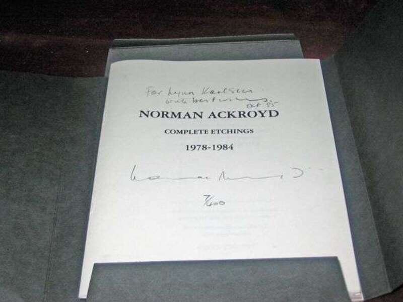 1984, 1st edition, number 7/400. With two original etchings, pencil signed, dated, titled and numbered in an edition of 300 in the margin; with 32 reproductions of etchings; titled page pencil signed by Ackroyd, numbered 7/400, dedicated and dated 'Oct 85'