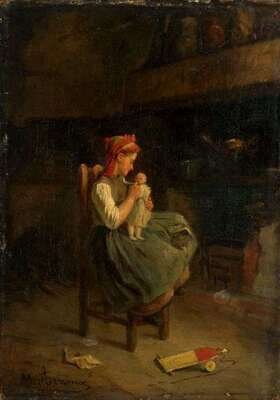MICHAEL ARNOUX (FRENCH 1833-1877) PLAYING WITH HER DOLL