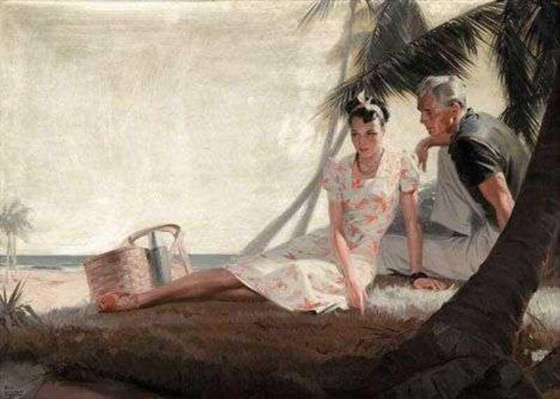 TOM LOVELL (AMERICAN 1909-1997) LOVERS BY THE PALMS