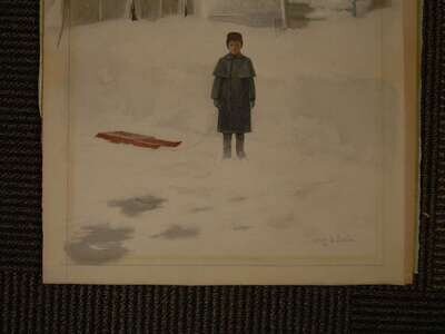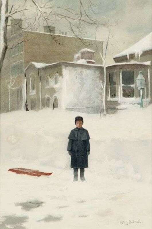 HENRY BAYLEY SNELL (AMERICAN 1858-1943) CHILD WITH SLED