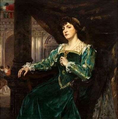 FERDINAND VICTOR LEON ROYBET (FRENCH 1840-1920) PORTRAIT OF MRS. CLEMENCEAU IN SIXTEENTH CENTURY COSTUME