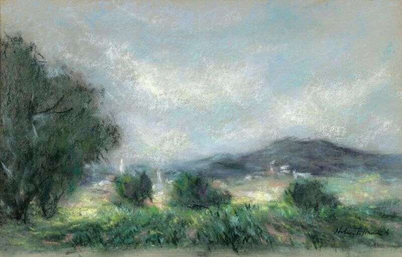 HOBSON PITTMAN (AMERICAN 1899-1972) VILLAGE IN A VALLEY