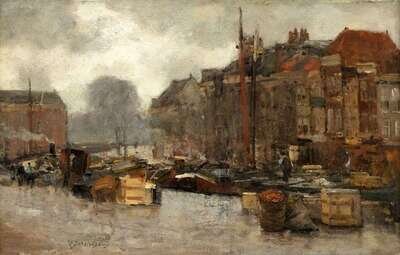 FLORIS ARNTZENIUS (DUTCH 1864-1925) A BUSY DUTCH QUAYSIDE