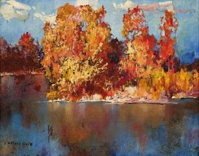 STEPHAN FEODOROVICH KOLESSNIKOFF (RUSSIAN 1879-1955) TREES ON A LAKE