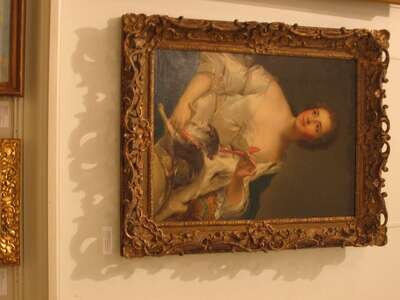 FOLLOWER OF JEAN MARC NATTIER (FRENCH 1685-1766) YOUNG LADY TYING A RIBBON AROUND HER DOG