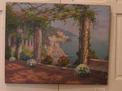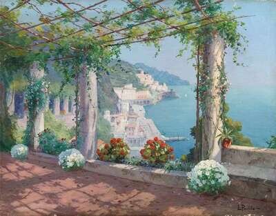 LUIGI PAOLILLO (ITALIAN B. 1864) "PANORAMIC VIEW OF AMALFI FROM AN ANGLE AT THE CAPPUCINNI HOTEL"