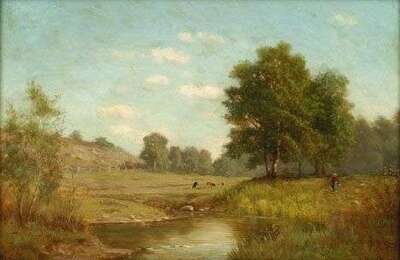 BENJAMIN MCCORD (AMERICAN LATE 19TH CENTURY) FIGURE BY A RIVER