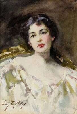 IRVING RAMSAY WILES (AMERICAN 1861-1948) STUDY OF A YOUNG LADY IN A WHITE DRESS