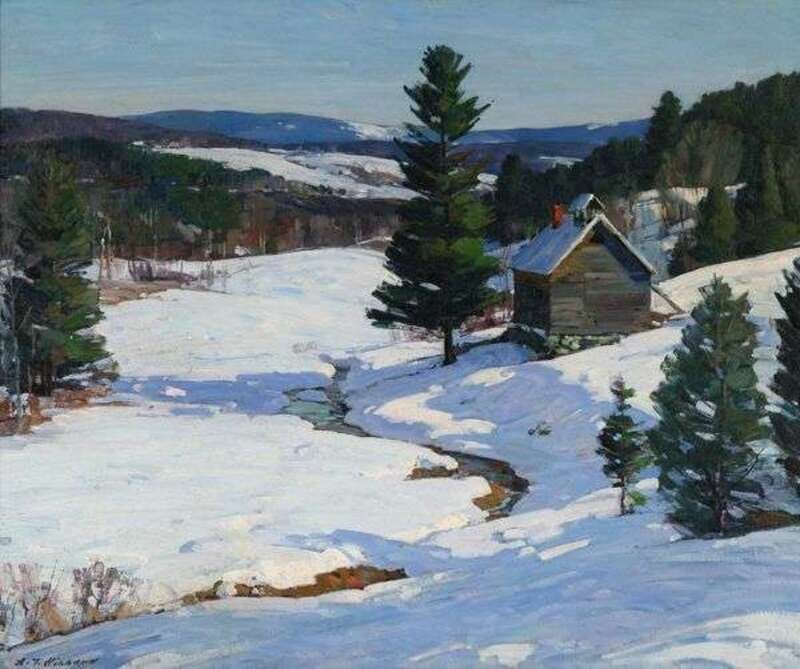 ALDRO THOMPSON HIBBARD (AMERICAN 1886-1972) SUNLIT WINTER LANDSCAPE