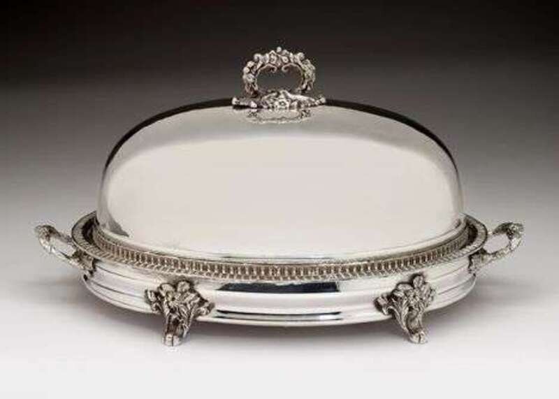 Sheffield plate hot water heated roast platter and cover