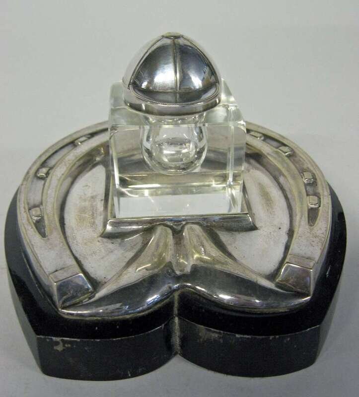 English silver plate equestrian inkstand early 20th century