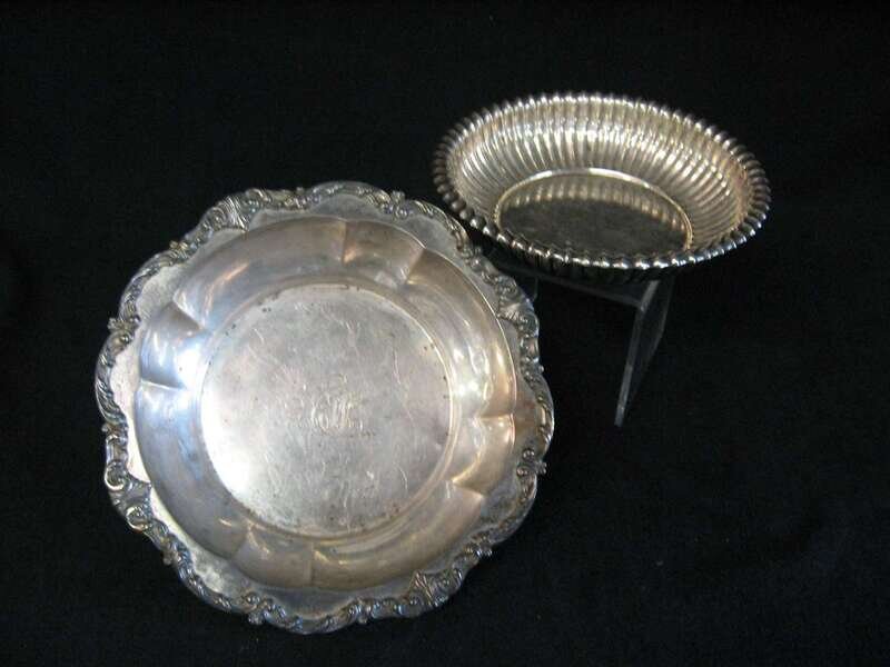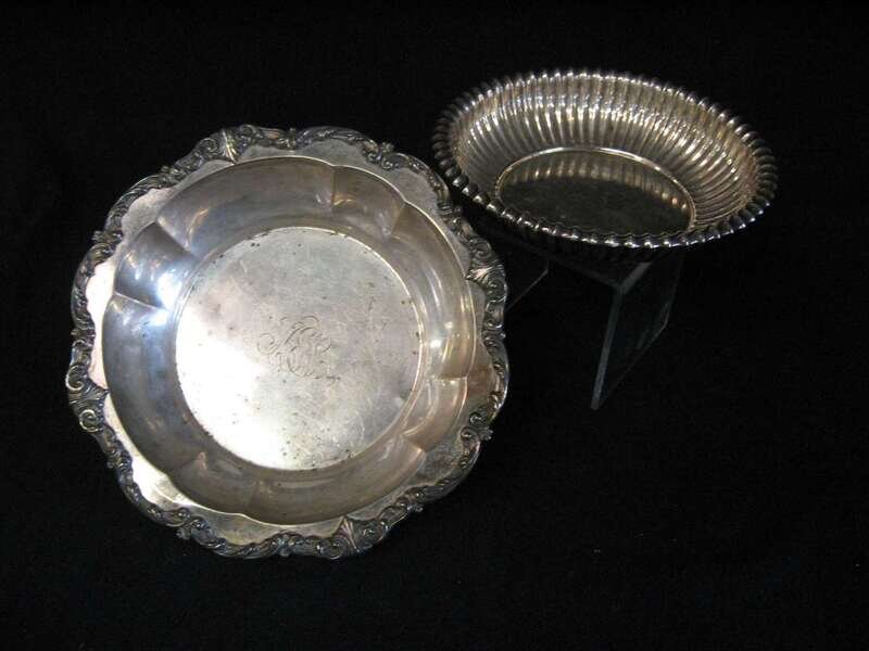 One circular, scalloped and fluted, the other circular with a scroll molded serpentine border.