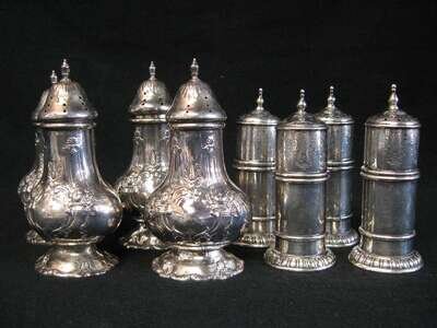 Together with four Lunt sterling silver salt and pepper shakers. (8).