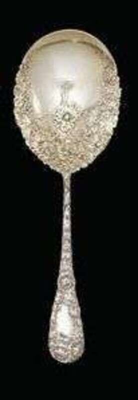 'Chrysanthemum' pattern sterling silver and silver gilt serving spoon pattern introduced 1893, retailed by galt & brother, washington