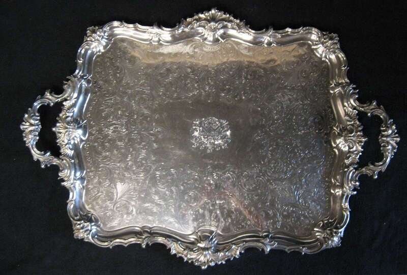 With a molded edge and leaf and scroll border, decorated with scrolling foliate designs centered by an armorial crest.