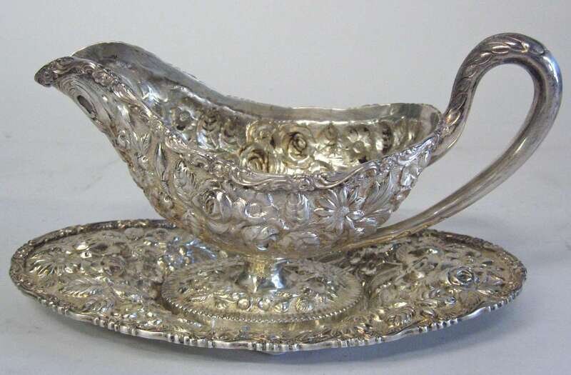 Schofield 'Baltimore Rose' pattern sterling silver sauceboat and tray baltimore, early 20th century