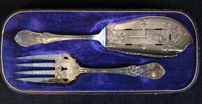 Decorated with scrolling chased decoration, in a purple plush lined case.