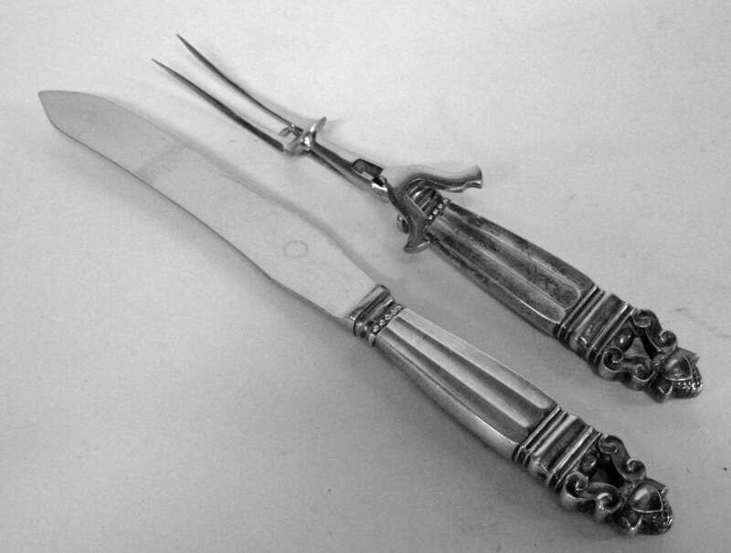 Georg Jensen sterling silver 'Acorn' pattern carving set mid 20th century