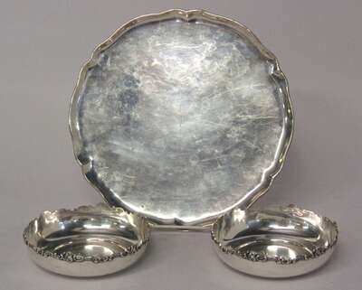 Comprising a Chilean silver salver, inscribed on the reverse 'To Ambassador and Mrs. Walter Howe in appreciation from their colleagues at the Chiefs of Mission Conference, Santiago, May 1959' and two Peruvian silver low bowls.