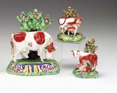 Three Staffordshire cow groups 19th century