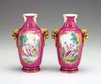 Pair of Chelsea style gilt-bronze mounted porcelain vases probably 18th century