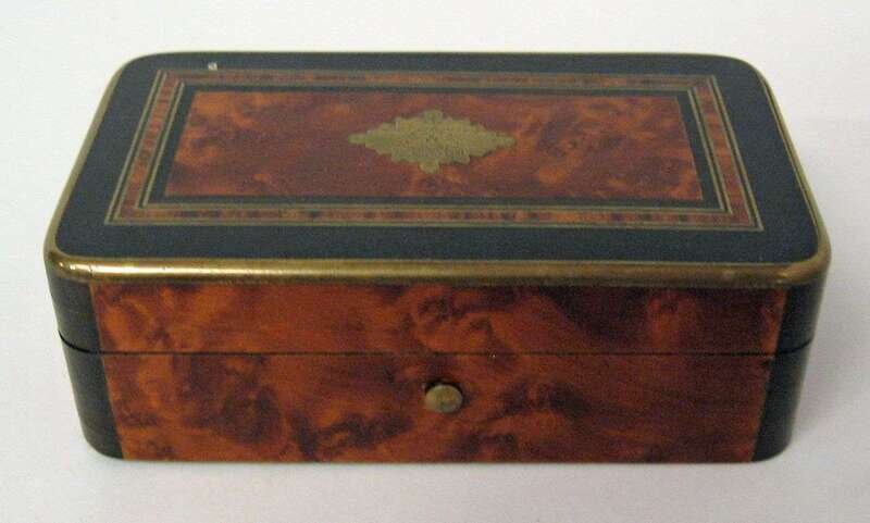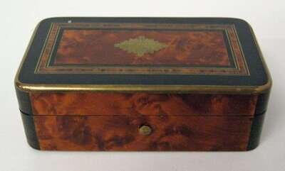 French burl walnut, mahogany and brass inlaid small box late 19th century