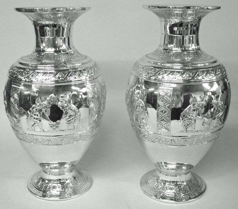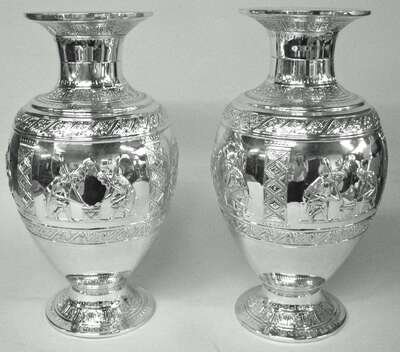 Of baluster form and decorated with classical motifs, the central band depicting classical warriors throwing dice . (2).