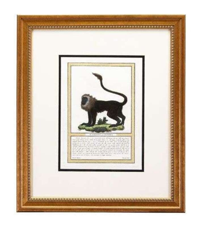 Four framed hand-colored engravings of monkeys jacob, italy, 1812