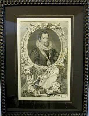 Eight framed black and white copper engravings of English noblemen houbraken, amsterdam, 1743