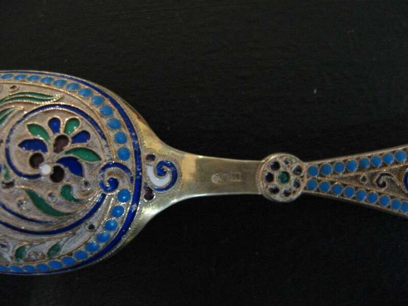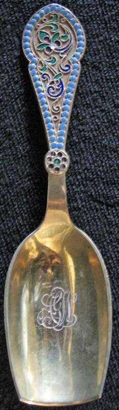 Russian enamel and silver gilt caddy spoon early 20th century