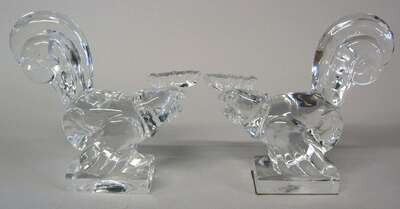Pair of Steuben glass cockerels 20th century