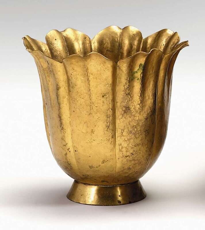 Marie Zimmerman Arts & Crafts gilt copper vase circa 1910