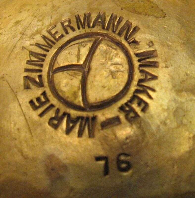 Hand hammered, in the form of an upright flower blossom, stamped 'MAKER-MARIE ZIMMERMAN' and 76.