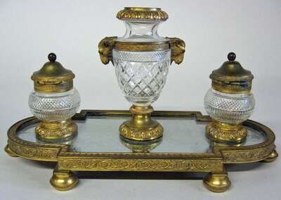 Louis XVI style gilt metal and cut glass inkstand 19th century