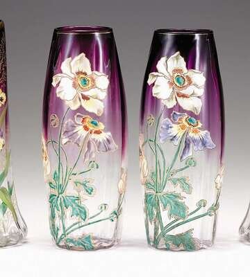 Pair of Bohemian amethyst glass and enamel vases early 20th century
