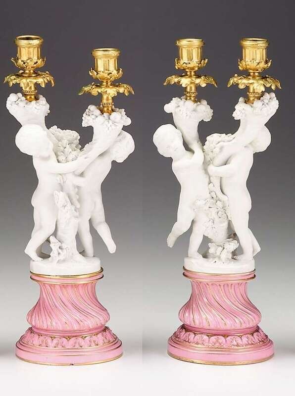 Pair of Sevres porcelain, bisque and gilt bronze mounted candelabra late 19th century