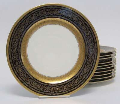 Set of eleven Rosenthal cobalt and gilt dinner plates mid 20th century
