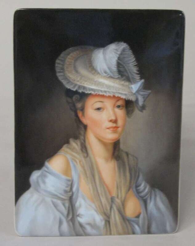 Painted with a bust length portrait of a young beauty, painted blue monogram mark.
