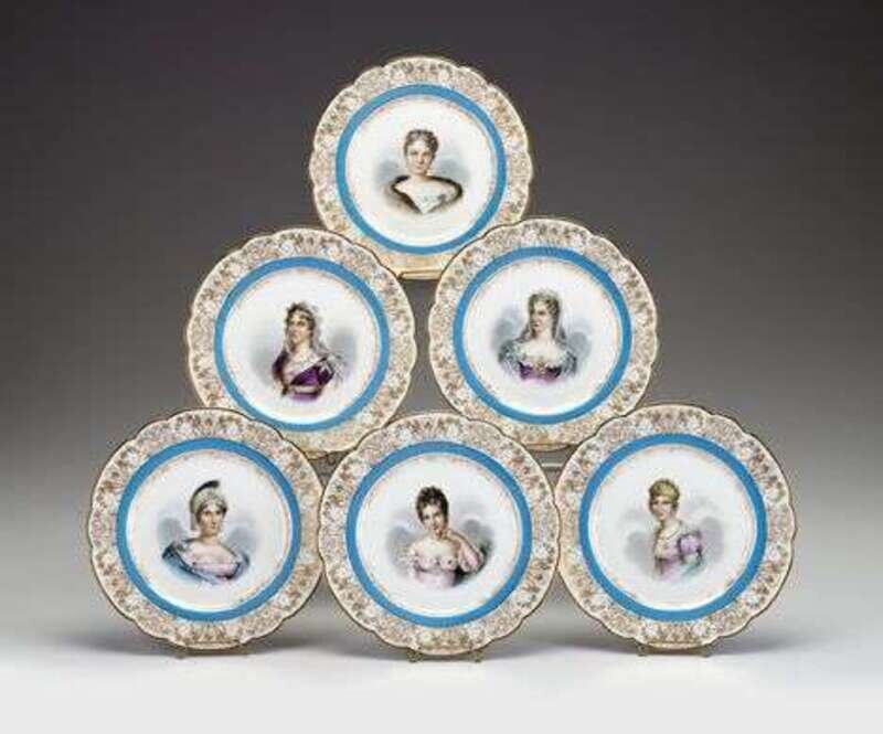 Set of six Sevres portrait plates late 19th century