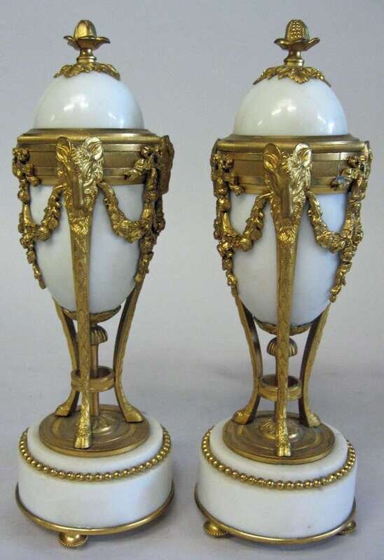 Pair of Louis XVI style gilt-bronze and marble cassolettes
