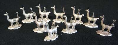 Set of ten South American sterling silver place card holders